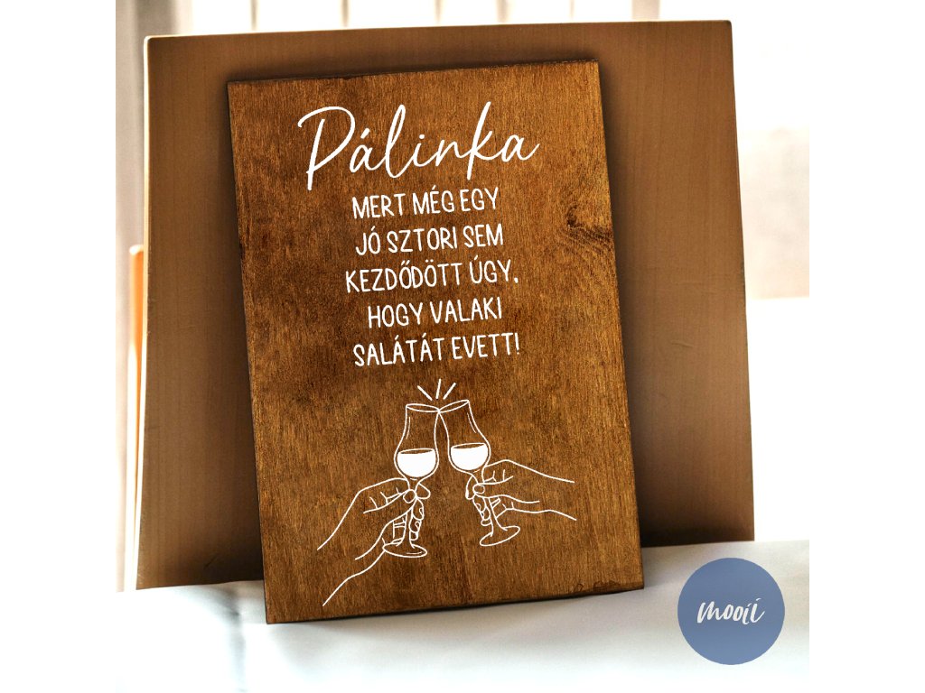 Lakodalmas tábla - A4 méretű rétegelt lemez tábla - "Pálinka - mert még egy jó sztori sem kezdődött úgy, hogy valaki..."