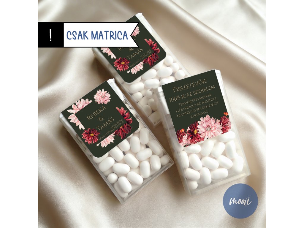Mentolos cukorkához egyedi matrica, különleges köszönetajándék az esküvőtökre - MATRICA
